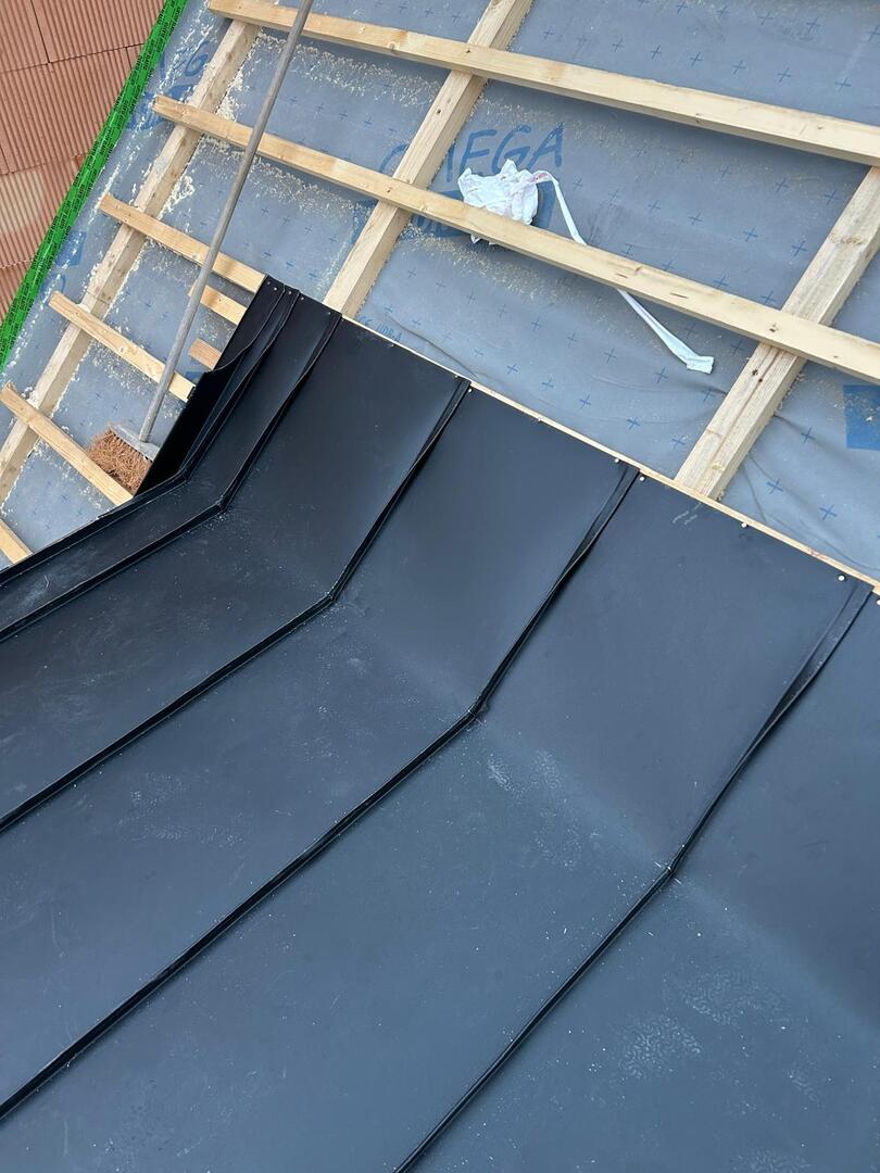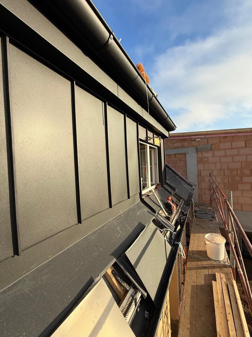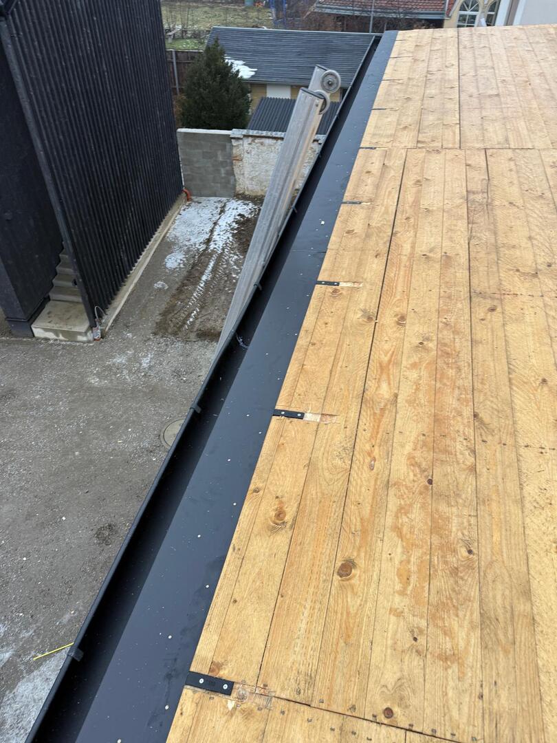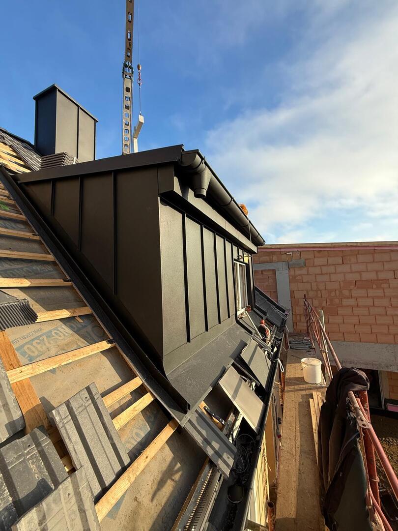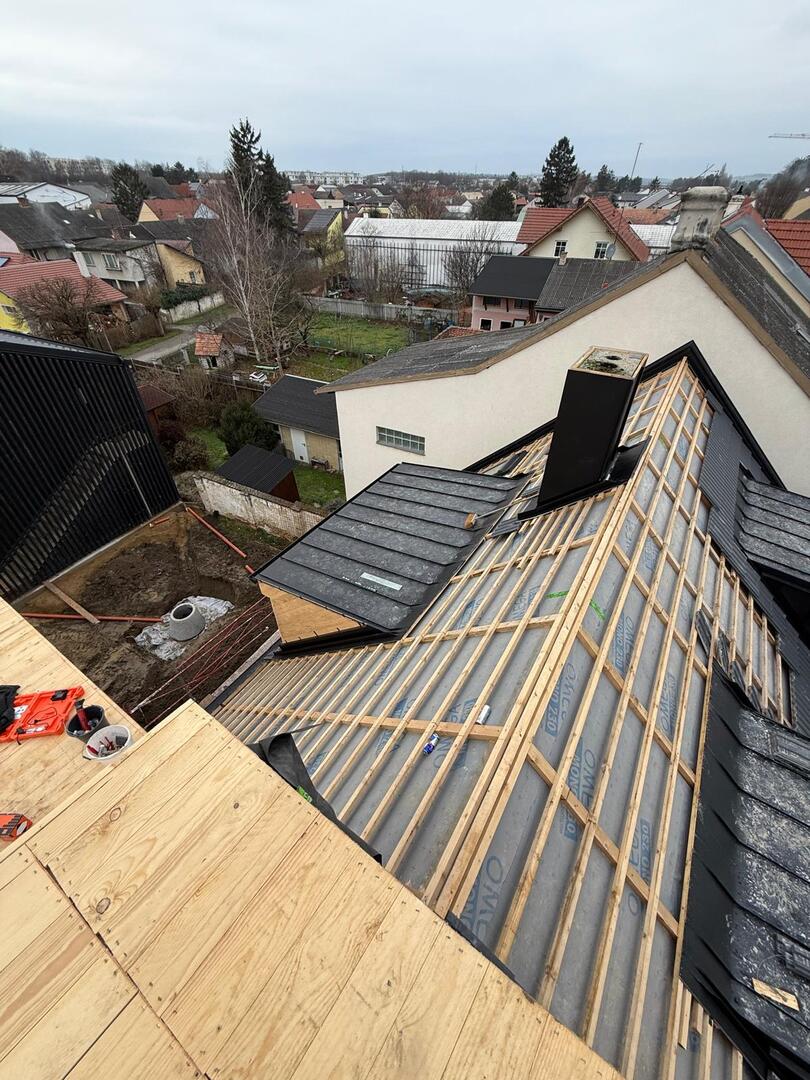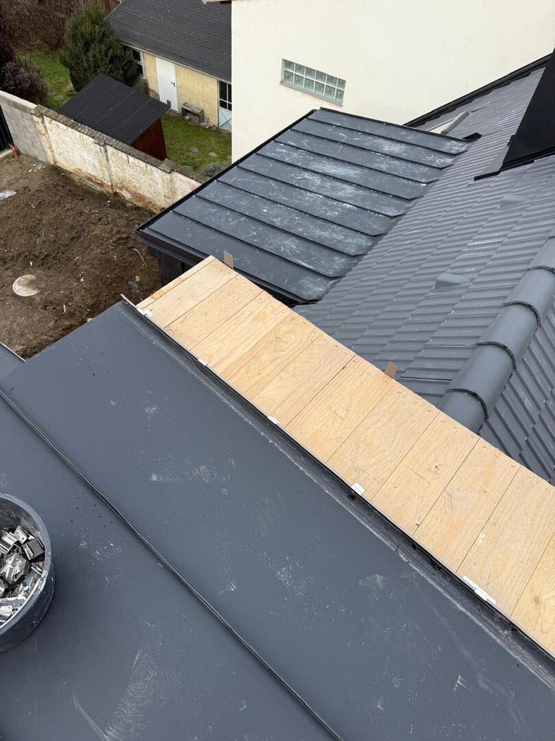 Besonderes Augenmerk lag auf präzisen Anschlüssen, Übergängen und Entwässerungselementen. Die Arbeiten umfassten sowohl Detailarbeiten an Dachgauben und Rändern als auch die vollständige Fertigstellung der Dachfläche, sodass das Haus nun modern, wetterfest und optisch ansprechend abgeschlossen is