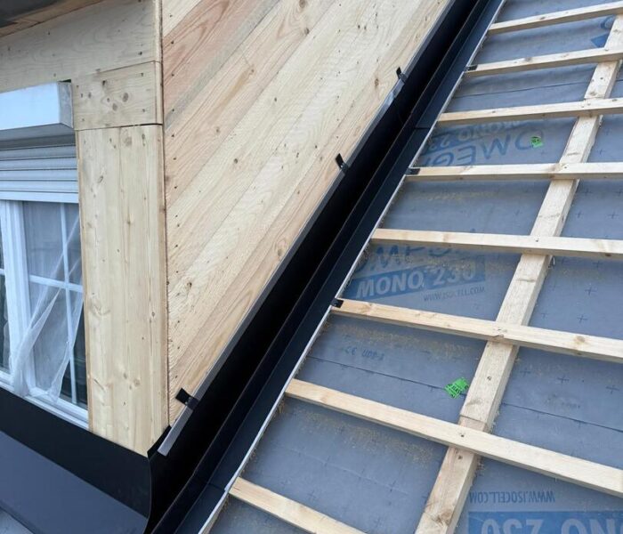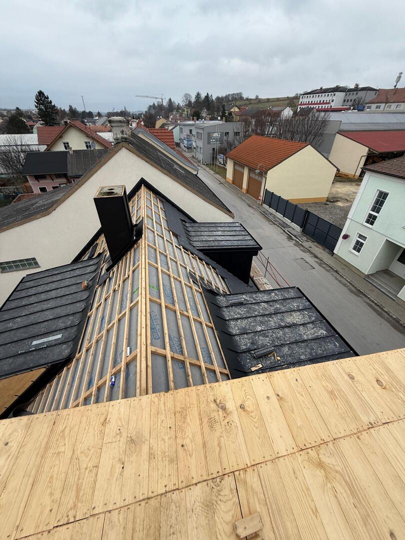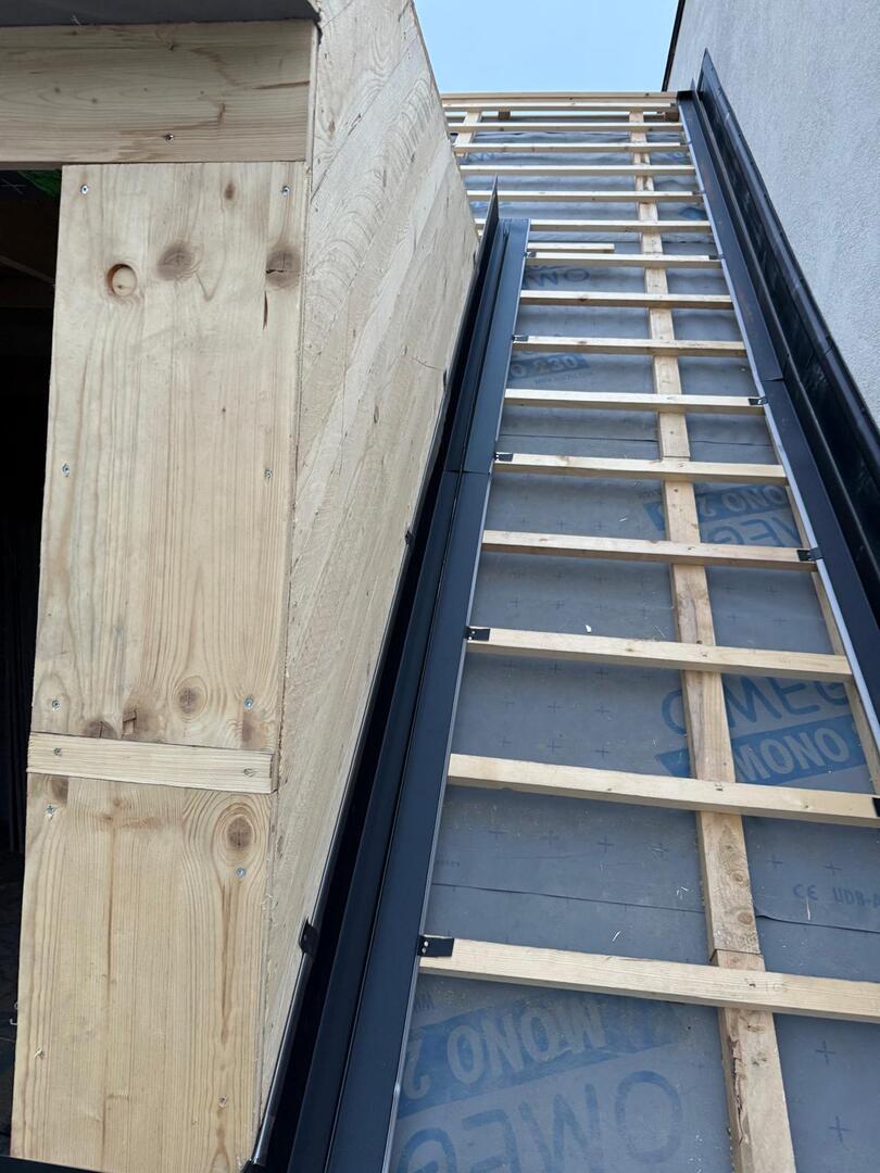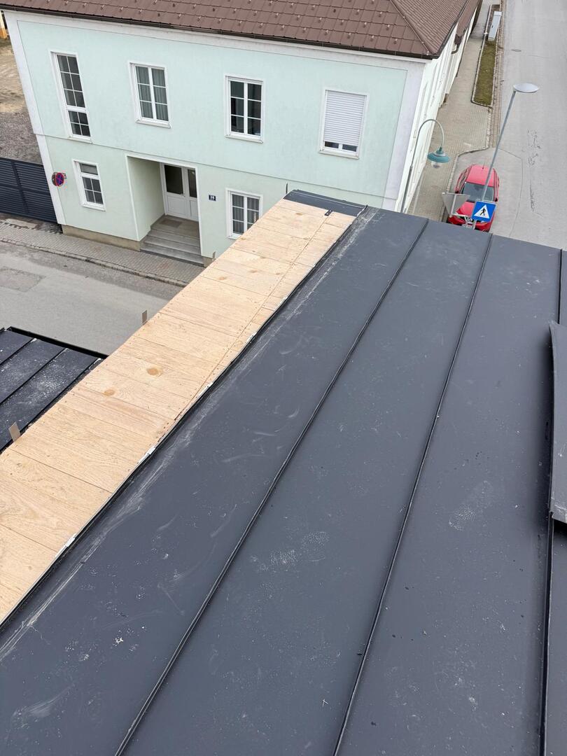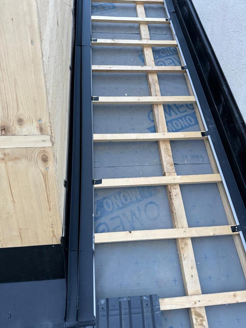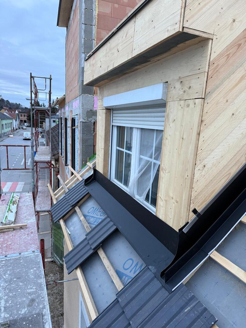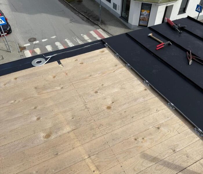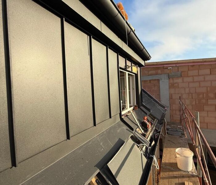 Besonderes Augenmerk lag auf präzisen Anschlüssen, Übergängen und Entwässerungselementen. Die Arbeiten umfassten sowohl Detailarbeiten an Dachgauben und Rändern als auch die vollständige Fertigstellung der Dachfläche, sodass das Haus nun modern, wetterfest und optisch ansprechend abgeschlossen is