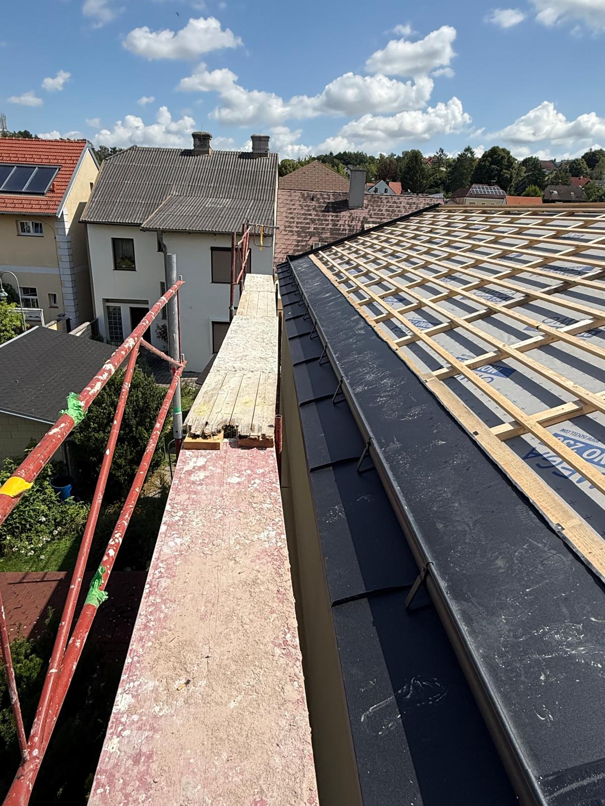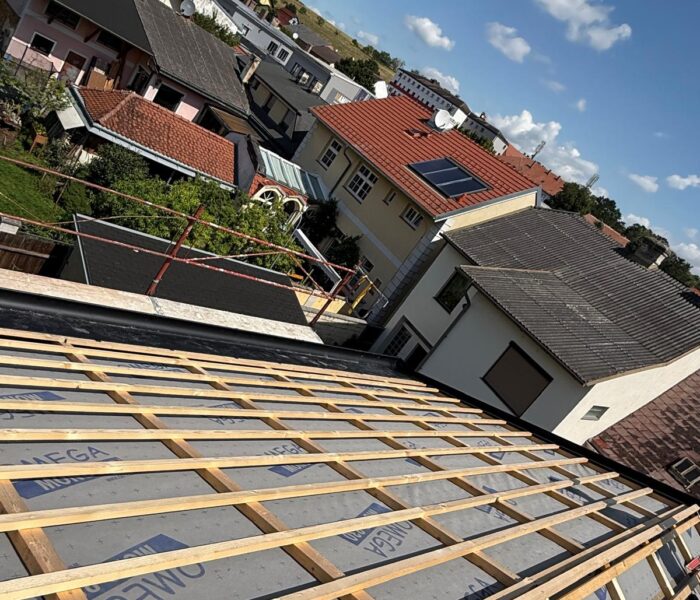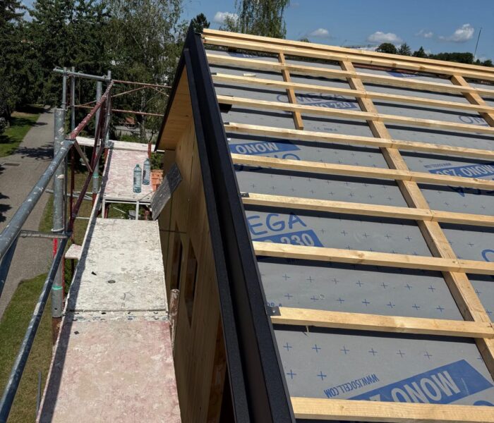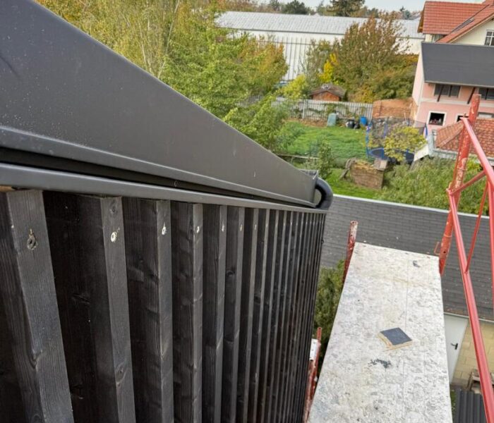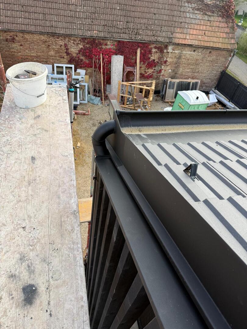 Beim Einfamilienhaus in Mistelbach wurden umfassende Ausbau- und Spenglerarbeiten durchgeführt. Neben der Anpassung der Dach- und Fassadenelemente gehörten auch präzise Metallarbeiten wie Regenrinnen, Dachverkleidungen und Fensterbleche zu den Leistungen. So konnte das Haus nicht nur funktional, sondern auch optisch hochwertig fertiggestellt werden.